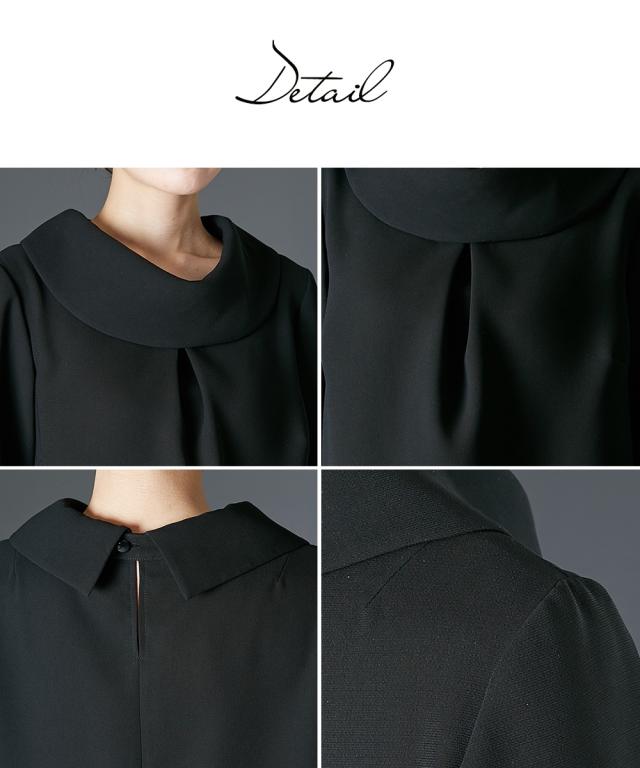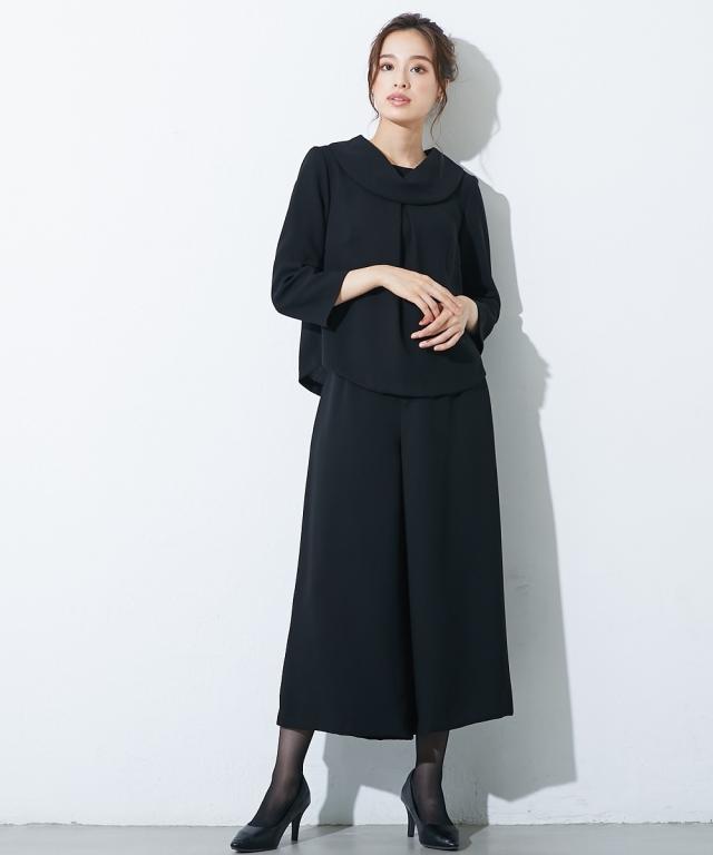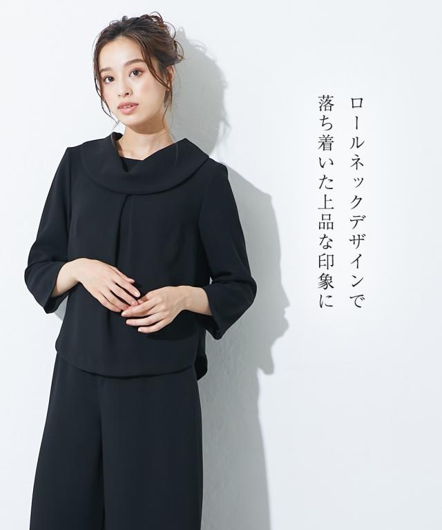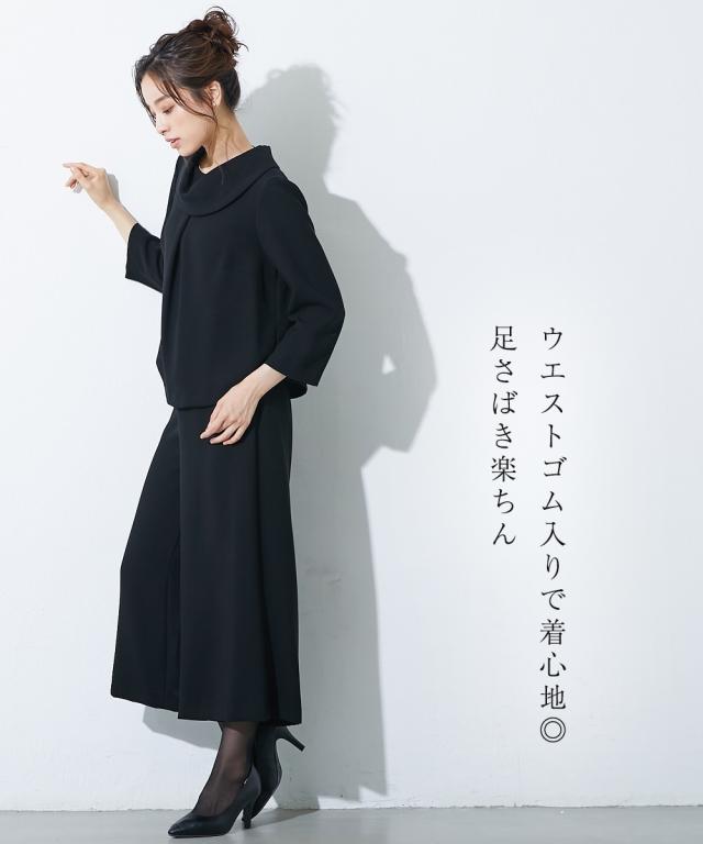 【喪服・礼服】<Callarus>日本製生地使用洗える防しわロールネックブラウス+ワイドパンツセットアップ<大きいサイズ有>