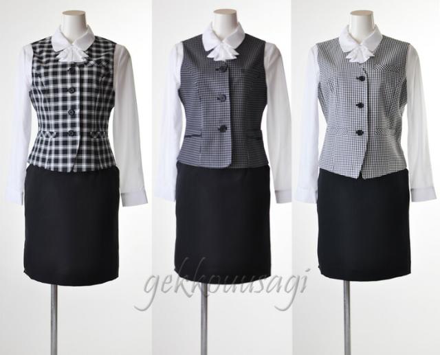 ベストは、a.黒×白、b.黒白格子柄、c.ギンガム、d.ピンク、e.ベージュ、f.黒とオーバーブラウスの7種類。