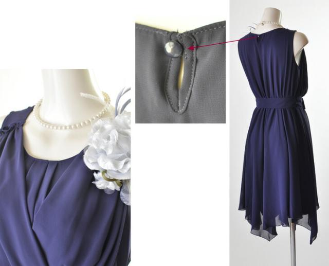 上身頃はカシュクールデザイン。首の後ろ1か所ボタン付。