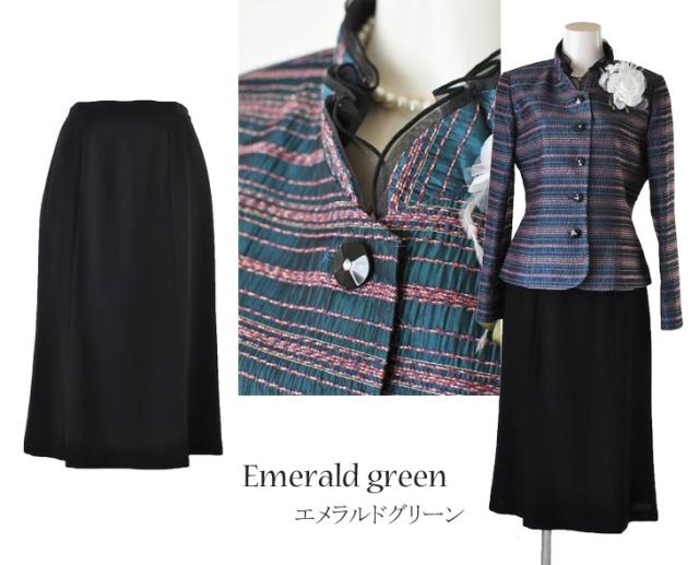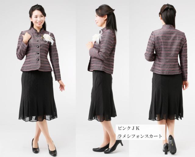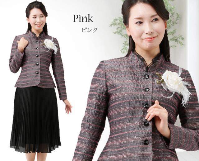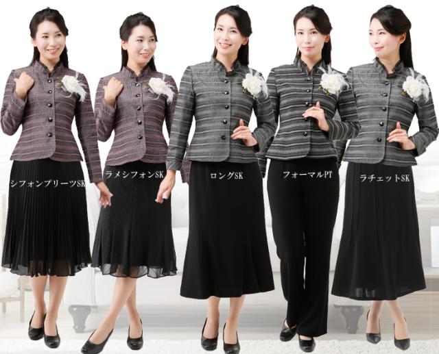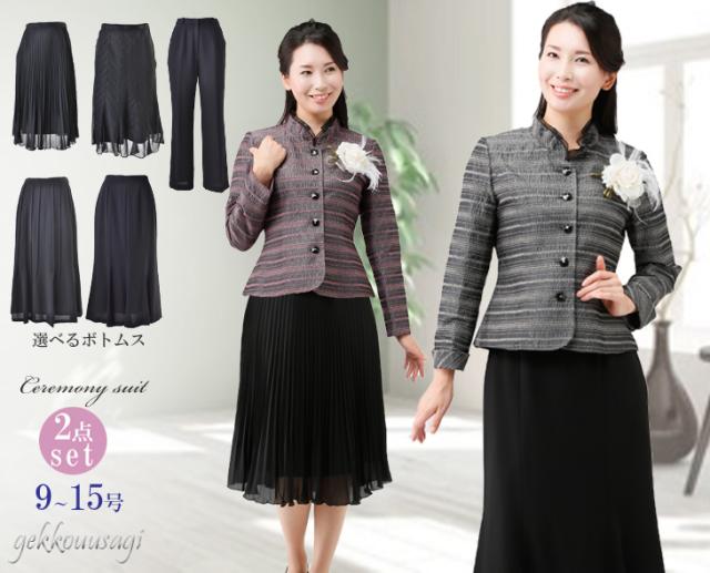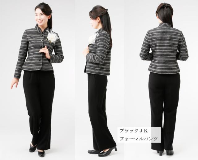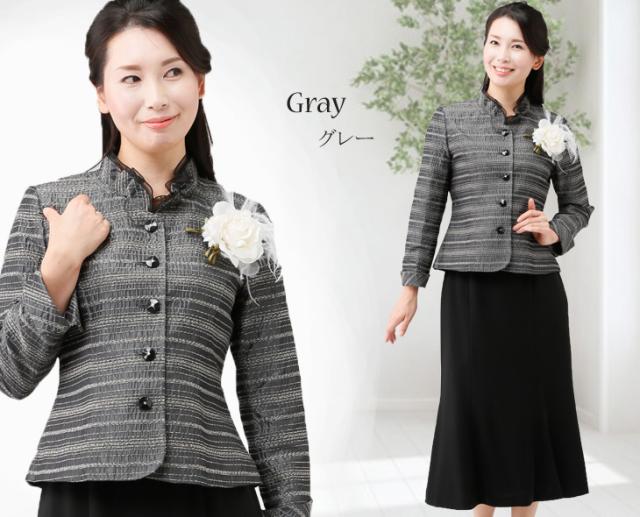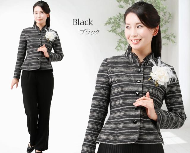 フォーマル スーツ レディーススーツ セレモニー カラーフォーマルスーツ ネップボーダー ジャケット&黒ボトムス 1753(au2f6n)