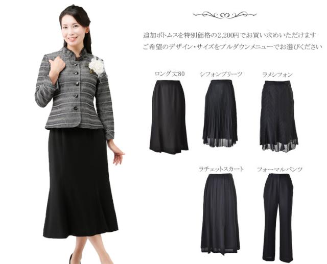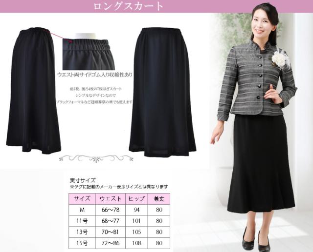 b.黒ロングスカート80cm丈のサイズは、M、11号、13号、15号。
