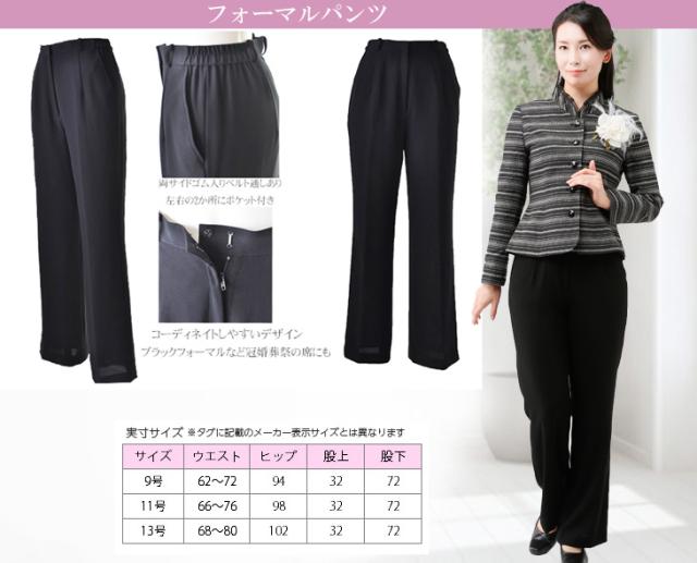 a.ブラックフォーマルパンツのサイズは9号、11号、13号。