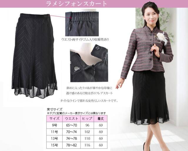 d.黒ラメシフォンスカート69cm丈のサイズは、9号、11号、13号、15号。
