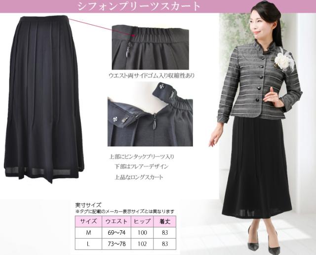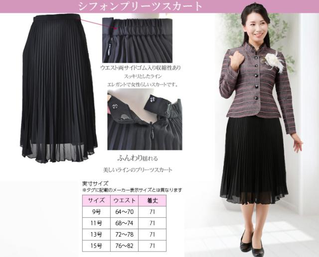 e.黒シフォンプリーツスカート71cm丈のサイズは9号、11号、13号、15号
