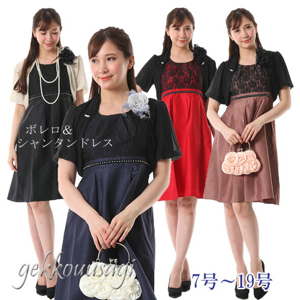 7号、9号、11号、13号、15号、17号、19号サイズのボレロ&ワンピースドレスセットです。