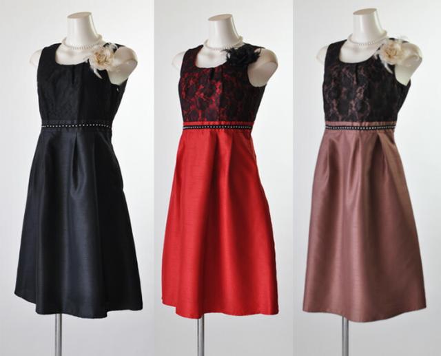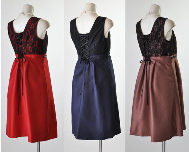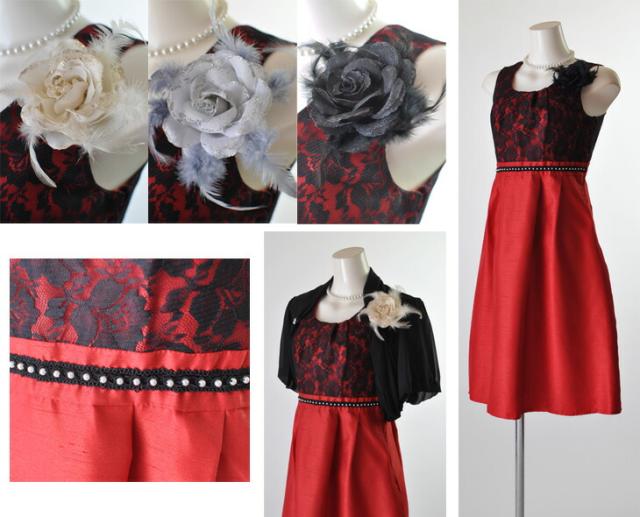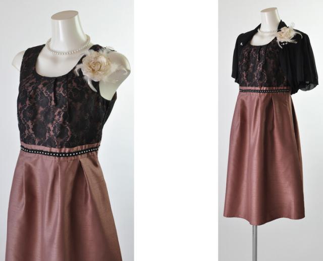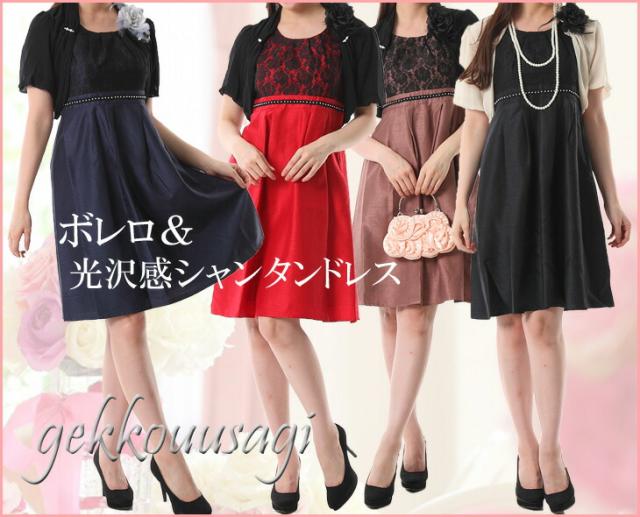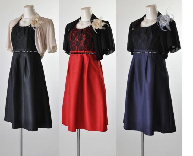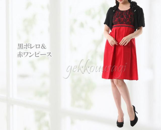 茶色・赤・紺色ワンピースには黒ボレロ、黒ワンピースにはベージュボレロのセットになります。