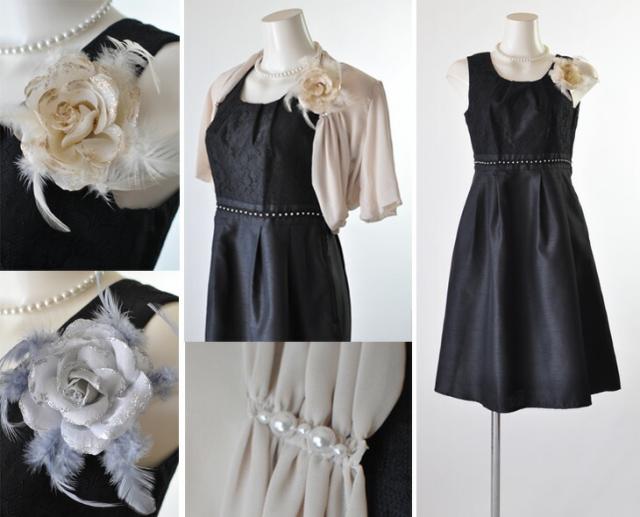 7号〜19号 パール調アクセサリー付き半袖ボレロ&後ろバストラインゴム入りシャンタン生地ふんわり シルエット パーティードレス 006(BL2F3Y/HG2F3U)