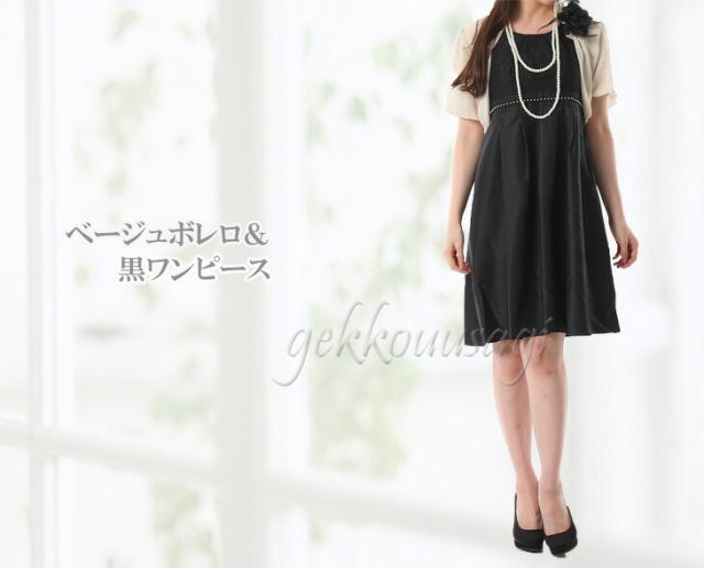 ベージュボレロ&黒ワンピース