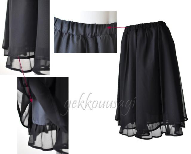 &選べるタック入り裾ティアードウエストゴム入りシフォンスカートM,L,LL,3Lサイズ