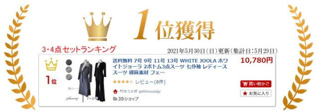 7号 9号 11号 13号 WHITE JOOLA ホワイトジョーラ 2ボトム3点スーツ 七分袖ジャケット スカート パンツ