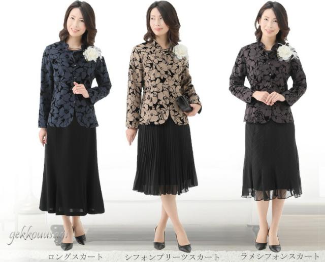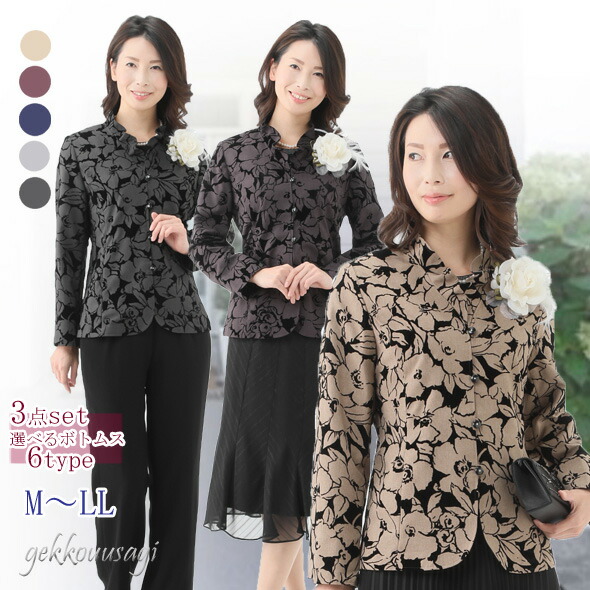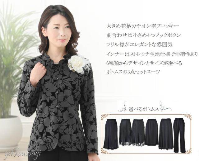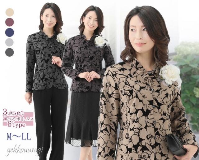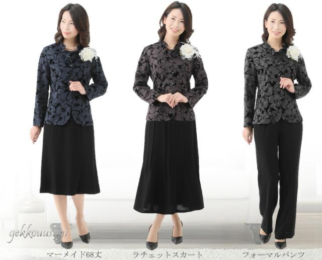 スーツ レディース フォーマル 選べるボトムス アンサンブルスーツ 3点セット ロングスカート パンツスーツ 母親 祖母 4261-4221