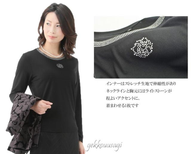 フロッキー柄で華やかさを添えたジャケットと、便利なブラックインナー、