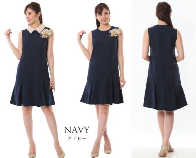 9号 Mサイズ リプリート REPLETE 取り外し襟付きドレス ひざ丈 ワンピース 着こなし2way アシンメトリー かわいい 可愛い 清楚 綺麗 きれい 美人 着回し 結婚式 デート ワンピース ブルー・オレンジ・ネイビー 302(au1f6)