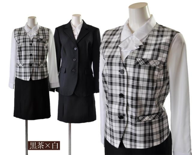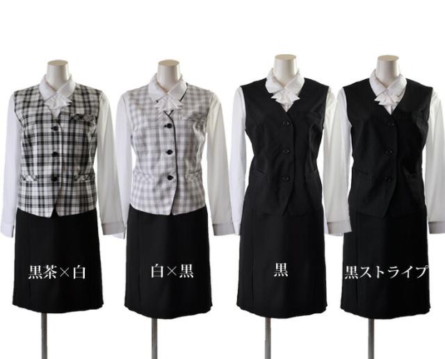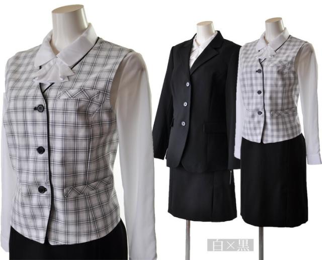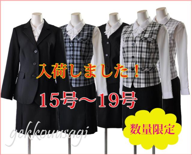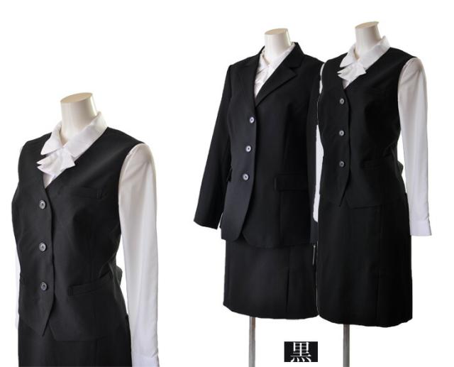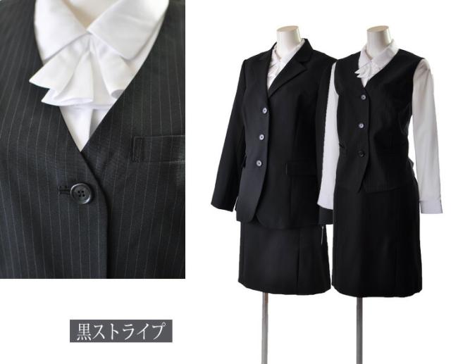 15号 17号 19号 大きいサイズ 3つボタン長め着丈ジャケット【ブラック・ブラック系ストライプ】ベスト スカート 3点セット 事務服 制服 仕事着 オフィススーツ【黒茶×白/白×黒/黒/黒ストライプ】(au2f1-kaz)55