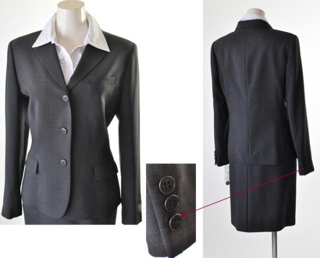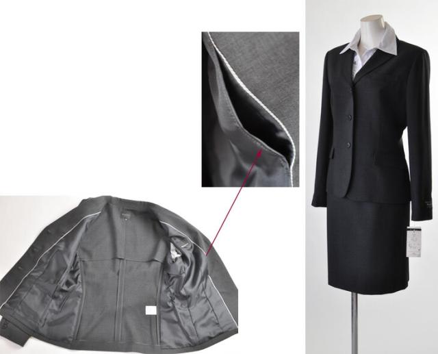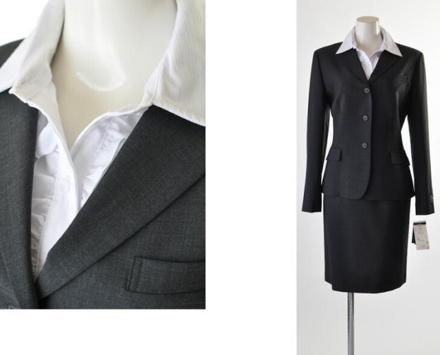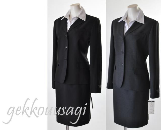 リクルートスーツ ビジネススーツ 女性 選べる ジャケットサイズ タイトスカート イタリア製 ウールスーツ100% グレー 裏地背抜きジャケット 面接 933