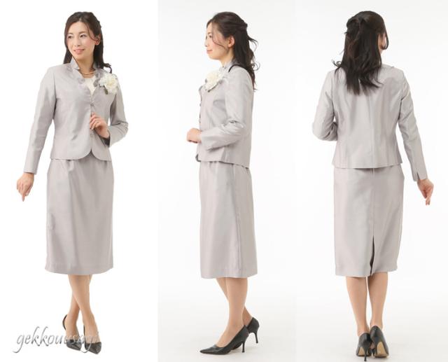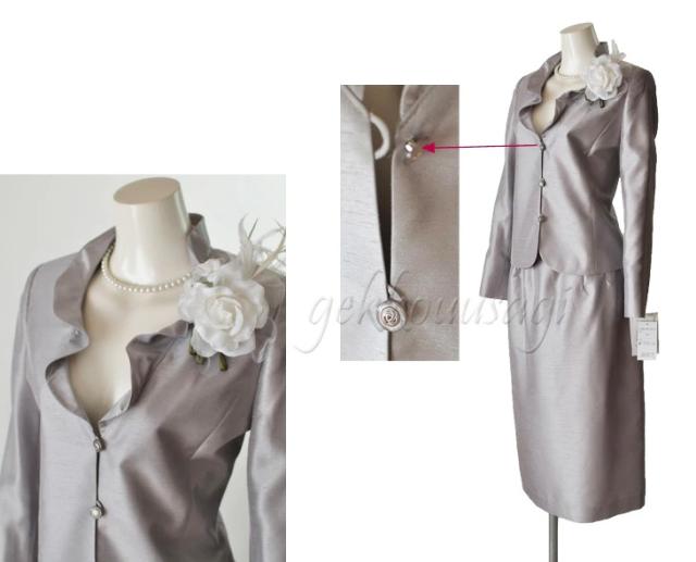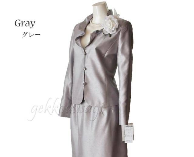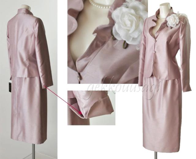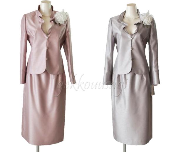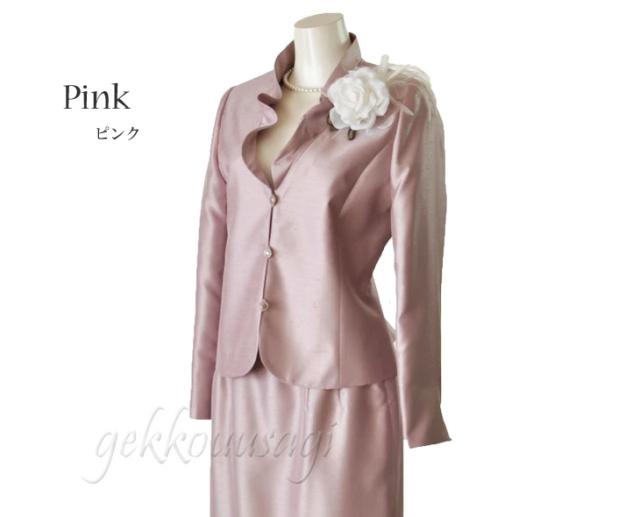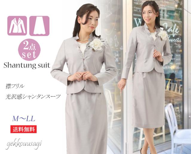 レディース フォーマルスーツ M L LL 3L 4L 5L 大きいサイズ フリル襟 光沢感 シャンタンスーツ ピンク グレー 七五三 ママスーツ 母親スーツ103(HGhun/BL2Y4)