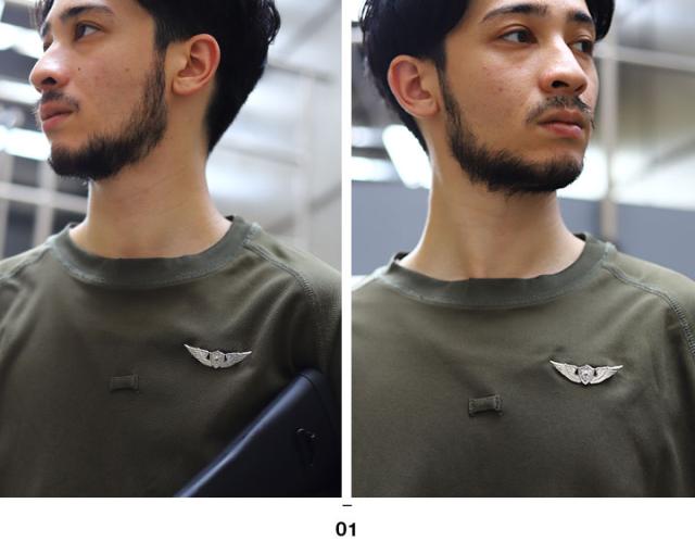 本商品は、陸上自衛隊の技能徽章(付加特技)のひとつで、防衛大臣が指定する講習を修了するとともに、自衛隊における航空士の正規教育課程を修了すれば付与を受け、着用できる銀(乙)の「航空(航空士)徽章/機上整備員徽章」を題材としたオリジナル商品です。