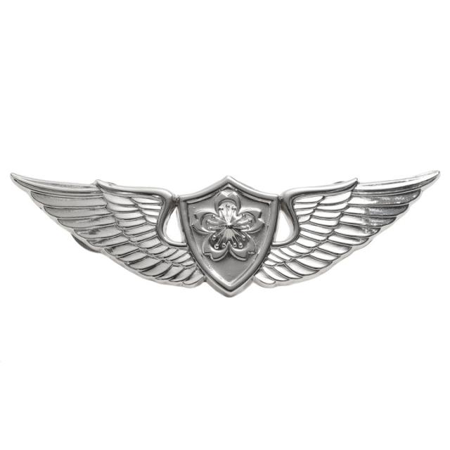 航空士徽章は、桜花(日本を象徴)を中央に配した盾を中心にして、その両側に翼を配したものを意匠としています。