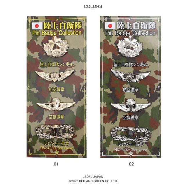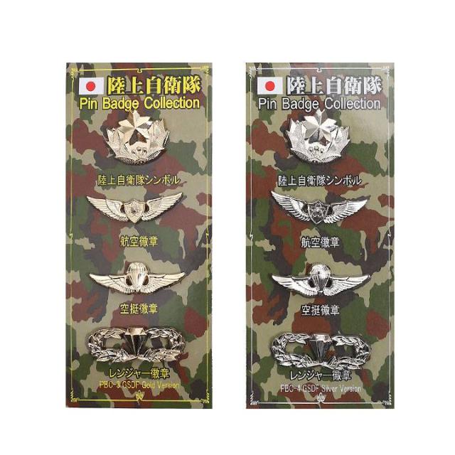 自衛隊 グッズ 陸上自衛隊 レンジャー 徽章 Ranger ピンバッジ ブローチ 4個セット 胸 技能徽章 台湾製 金/銀 レンジャー徽章 操縦士 航空士 空挺徽章 ピンブローチ ピンズ 自衛隊バッチ 金 銀 防衛省 PX品 PBC-3 PBC-4