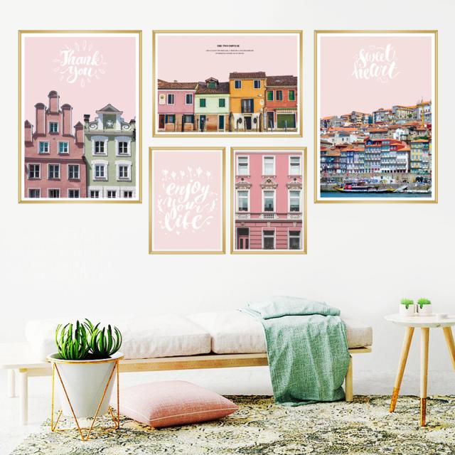 hesperus ウォールステッカー AAC007 旅行 ピンク 建物 景色 癒す DIY 壁紙 インテリアシート 剥がせるシール 送料無料