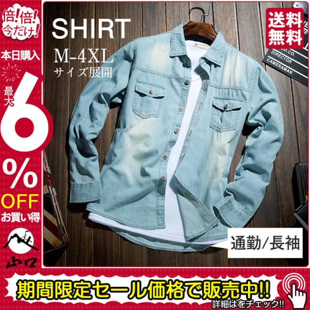 デニムシャツ メンズ オックスフォードシャツ タイト 春秋冬 長袖 ミリタリーシャツ ワイシャツ 無地 ビジネス オックス カジュ