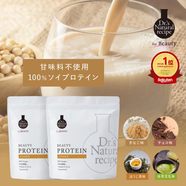 4つの味から選べる 美容プロテイン 同じ味2袋セット(きなこ/チョコレート/ほうじ茶味/抹茶豆乳味) | ドクターズナチュラルレシピ タンパク質 女性用 ソイプロテイン アンファー 無添加 置き換え