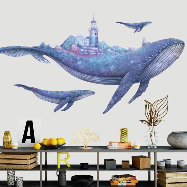 hesperus ウォールステッカー AAC014 親子クジラ 夢幻世界 ブルー 動物 癒す DIY 壁紙 インテリアシート 剥がせるシール 送料無料