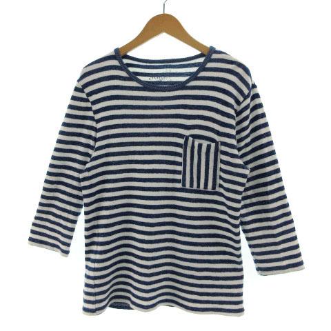 【中古】シンプリシテェ SIMPLICITE Tシャツ 七分袖 パイル地 コットン ボーダー ブルー 青 ホワイト 白 M メンズ