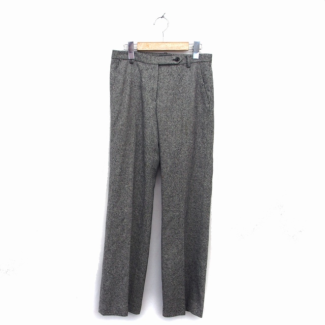 【中古】ヒューマンウーマン HUMAN WOMAN パンツ ストレート センタープレス ウール 総柄 1 黒 ブラック アイボリー