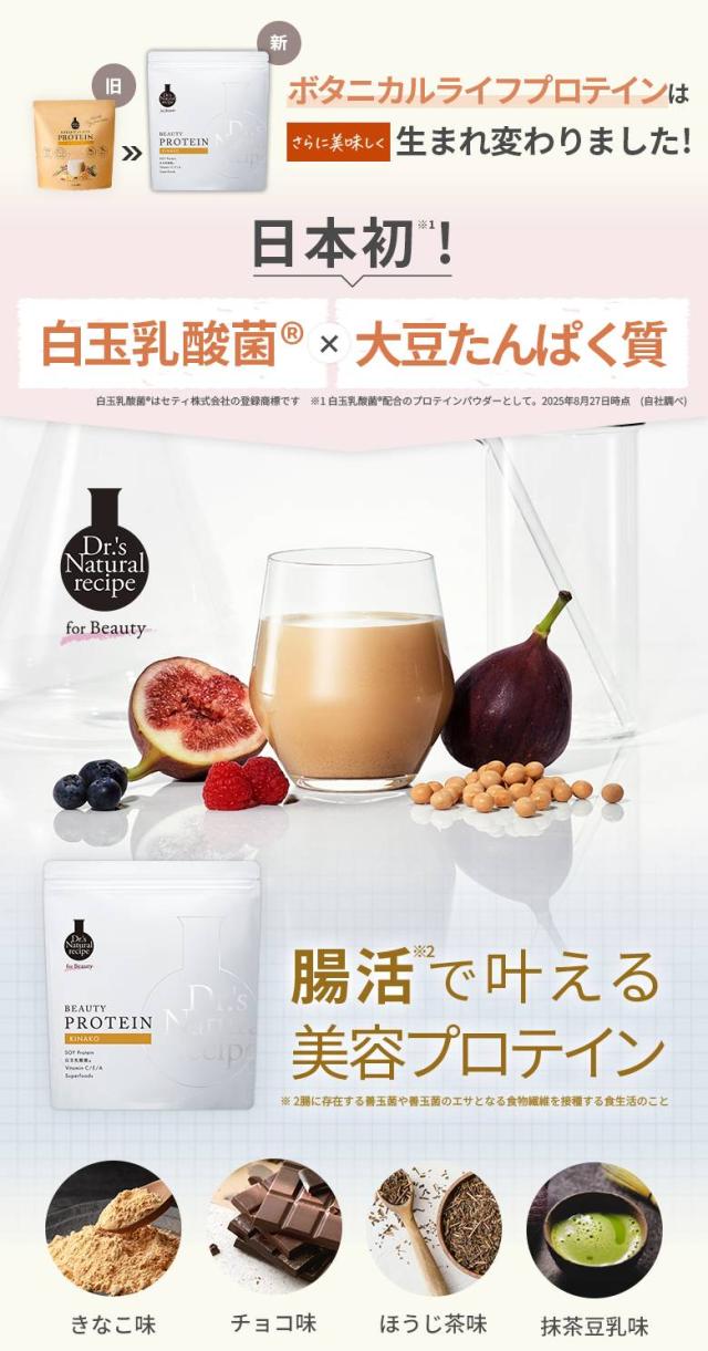 美容プロテイン 違う味2袋セット(きなこ味/チョコ味/ほうじ茶味/抹茶豆乳味) | ドクターズナチュラルレシピ たんぱく質 タンパク質 女性用 ソイプロテイン アンファー 大豆