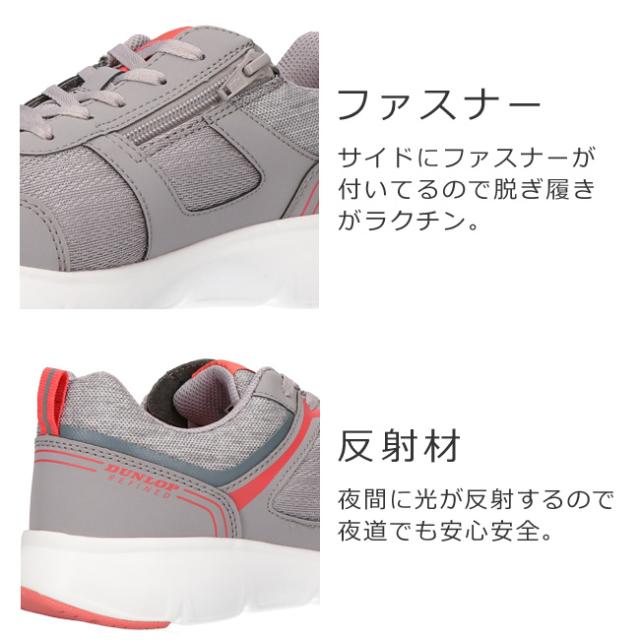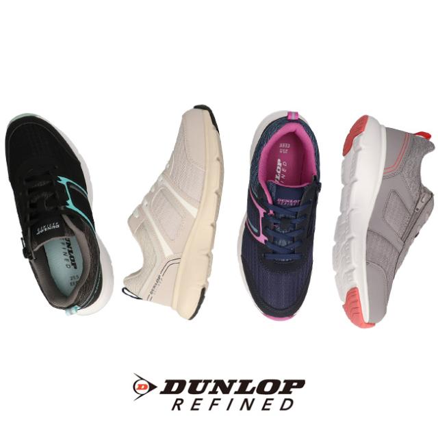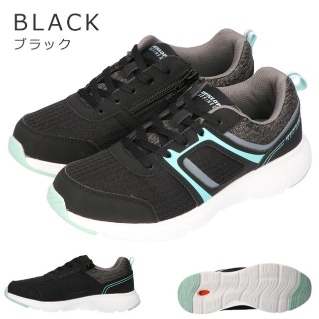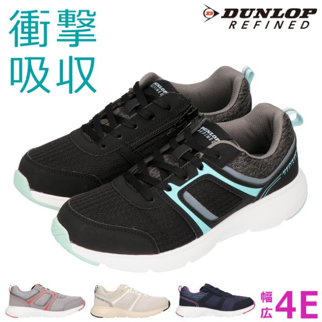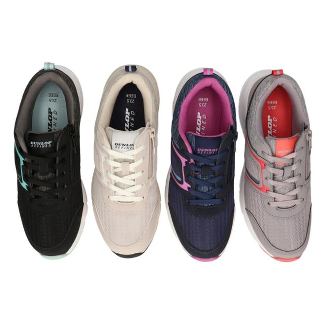ダンロップ リファインド スニーカー レディース 黒 4E 幅広 ファスナー ウォーキング 歩きやすい 疲れない 軽量 可愛い おしゃれ シューズ 通学 通勤 運動 靴 C1501