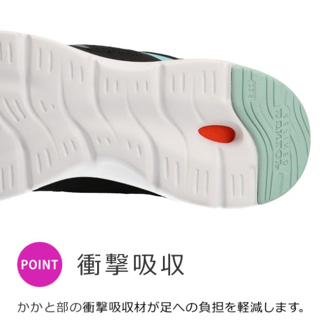 かかと部分に衝撃吸収材を搭載した軽くてボリューム感のある靴底と衝撃吸収性を約16%向上したPUスポンジインソール。