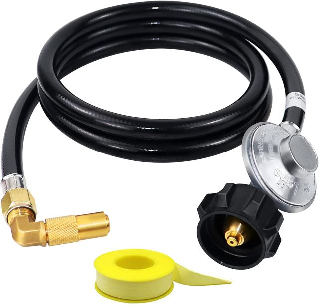低圧プロパン レギュレータ ホース 180 減圧弁 90 度コネクタ付き 長さ 5 フィート