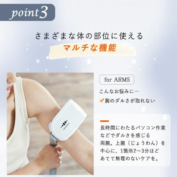 腕、首、足など…、さまざまな体の部位に使えるマルチな機能