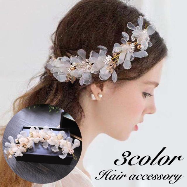 ヘッドドレス ヘアアクセサリー ブライダル 髪飾り レディース 女性 フェイクパール ラインストーン お花 フラワーモチーフ 上