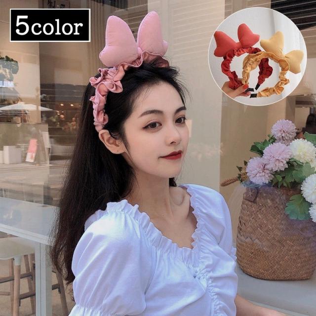 カチューシャ リボン レディース 女性 ヘアアクセサリー 髪飾り フリル 大きめリボン かわいい 単色 無地 レッド ピンク