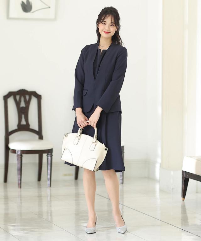 ■ノーカラージャケットで固すぎないやわらかな印象に