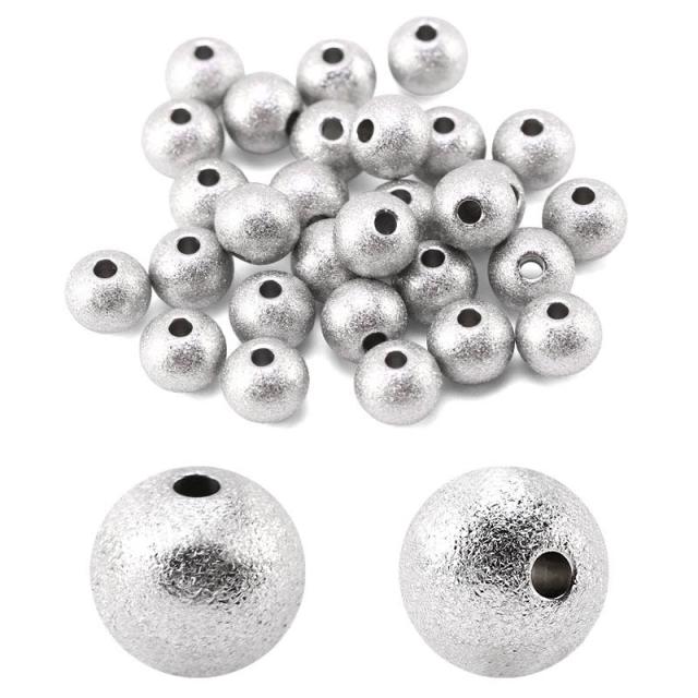 ギラギラのブラスト加工をしたようなラメ調のステンレス製のリング型のスペーサーや飾りに使える穴あきの丸玉ビーズパーツ。