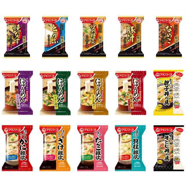 アマノフーズ フリーズドライ 和食 15種45食 詰め合わせ セット 【 送料無料 】 インスタント食品 常温保存 即席みそ汁 いつものおみそ汁 雑炊 にゅうめん 惣菜 おかず 丼 の具 お弁当 業務用 非常食 備蓄 バレンタイン 2026 ホワイトデー