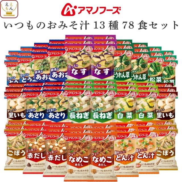 アマノフーズ フリーズドライ 味噌汁 いつものおみそ汁 13種78食 詰め合わせ セット 【 送料無料 】インスタント食品 常温保存 即席みそ汁 お味噌汁 なす 野菜 赤だし ご飯のお供 備蓄 非常食 保存食 防災 バレンタイン 2026 内祝い 節分