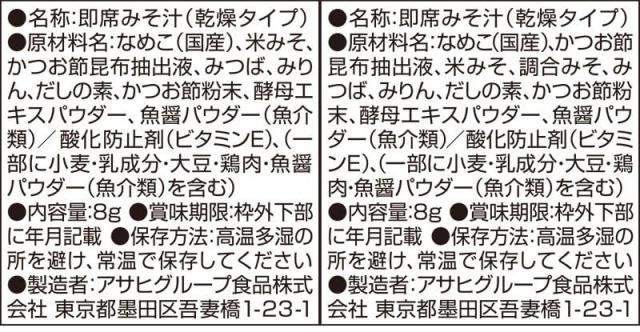 ■ いつものおみそ汁 なす 9.5g あさり 7.4g あおさ 8.2g とうふ 10g ほうれん草 7g 小松菜 8.3g 長ねぎ 9g 白菜 9g 野菜 10g ごぼう 9g 里いも 9g とん汁 10.5g なめこ 赤だし 8g 赤だし 三つ葉入り 7.5g ■ いつものおみそ汁 贅沢 焼なす 9.1g 海苔 7.5g とうふ 10.5g 炒め野菜 11g 豚汁 12.5g なめこ 9g しじみ 赤だし 15g ■ 旨だし おみそ汁 なす汁 合わせ 9g こまつ菜 合わせ 9g 豚汁 12.5g なめこ 合わせ 8g なめこ 赤だし 8g 26種 各2食 合計52食 |