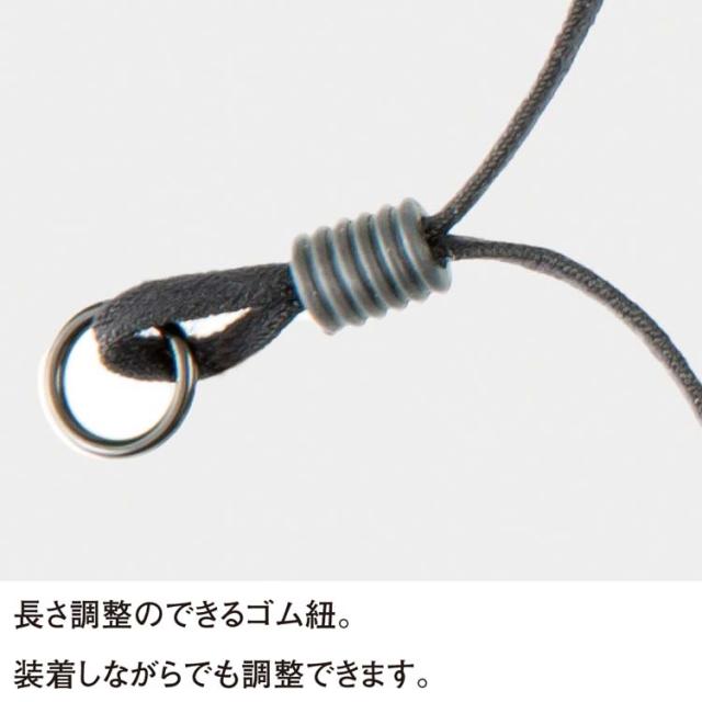 ●長さ調整のできるゴム紐。装着しながらでも調整できます。