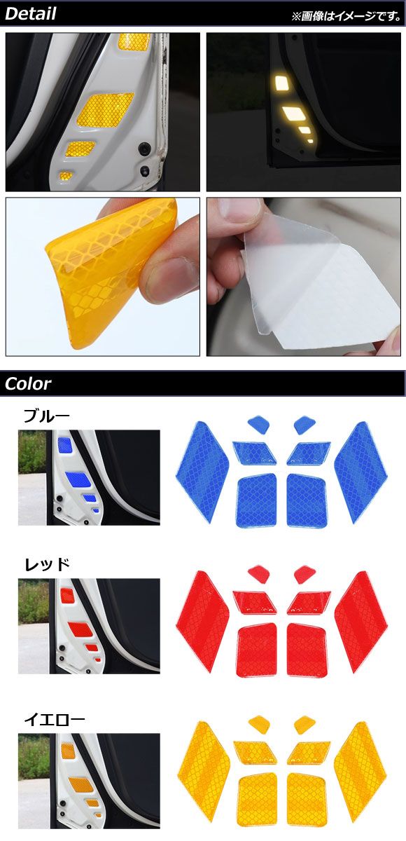 反射ステッカー トヨタ FJクルーザー GSJ15W 2010年12月〜2018年01月 ブルー 夜間等の安全対策にお勧め! 入数:1セット(8個) AP-AS651-BL AP ドア反射ステッカー 反射板 反射テープ 反射フィルム 反射シール 反射 リフレクター リフレクタ リフレクト リフレクティブ 蛍光シール シール テープ ステッカー フィルム デカール カーステッカー サイドドア ドア 開放 開閉 オープン 開ける 後続 後続車 バイク 自転車 追突 くぼみ 貼る カバー セキュリティ セーフティ 交通 安全 夜 暗い 夜道 夜間 暗所 事故 防止 予防 警告 アピール 視認性 光る ライト プロテクト プロテクター ガード キズ防止 傷防止 傷予防 内側 内装 パーツ インテリア アクセサリー 装飾 青 BLUE