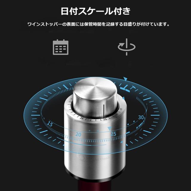 【日付スケール付き】再利用可能なワイン真空ストッパー、当社の真空ワインボトルストッパーは、気密状態を作り出し、ボトルから空気を吸い出してワインを新鮮に保ち、開封した日と同じくらいワインの風味を維持することで、ワインの酸化を最小限に抑えます。ストッパーは開始日をマークするために日付スケールで設計されました。