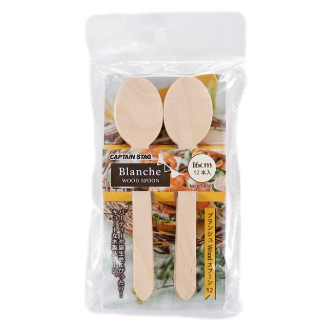 使い捨てスプーン 16cm 12本入 Woodスプーン 12 ブランシュ キャプテンスタッグ ( CAPTAIN STAG 使い捨て 12本 スプーン カレースプーン 木製 木 テイクアウト 持ち帰り カトラリー ピクニック アウトドア おしゃれ )