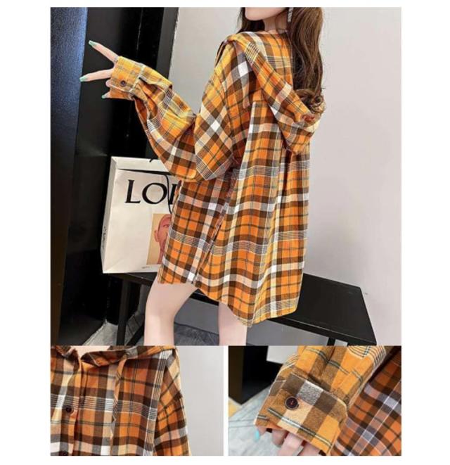 フード付きシャツ シャツコート シャツジャケット レディース アウター ロングシャツ ネルシャツ オーバーサイズ 秋服 秋物 ゆったり 体型カバー チェック柄 大きサイズ 送料無料