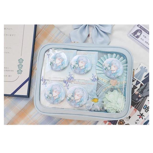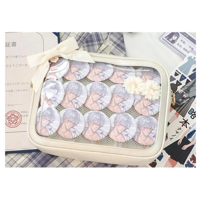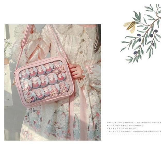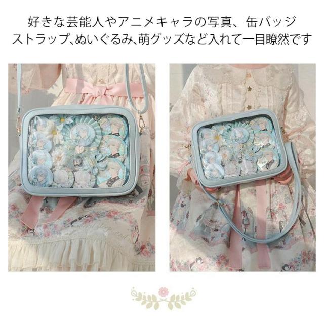 | 自分のコレクションを持ち歩けるバッグです。 マイコレクションをオシャレに持ち歩きましょ♪ バッグの透明ポケットで見せたいアイテムで自分の好みにアレンジできます。 好きな芸能人やアニメキャラの写真、缶バッジ、ストラップ、ぬいぐるみ、萌グッズなど入れて一目瞭然です。 | |