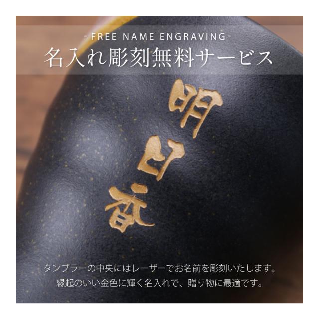 晩酌の時間に他愛のない話をすることが仲良しの秘訣だというパートナーさんたちって多いですよね。 いつまでも仲良くいてほしい、 そんな思いを乗せて、このギフトセットを贈りませんか? 3つのおすすめポイントをご覧ください。 1.日本を代表する焼き物「美濃焼」4点セット − ペアタンブラー − 落ち着いた風合いで日本の食卓に馴染む、和の心を感じるデザイン 飲み口には釉薬垂れを施した、味のある雰囲気が特徴です。 窯の中の火のあたり方や温度などで個体差を表現できる”窯変釉(ようへんゆう)”を使用しているため、1つ1つ違う個性をお楽しみいただけます。 温かい飲み物も冷たい飲み物もどちらも美味しく感じる風合いで、お茶を注いでほっこりなごむのも良し、焼酎ロックでしっぽり飲むのも良し、容量も350mlと使い勝手のいいタンブラーです♪ − ペア小皿 − 同じデザインのペア小皿をセットにしました。 晩酌に欠かせないおつまみをちょこっと乗せたり、お刺身の醤油を入れたり、丁度良い深さで使い方は無限大ですよ。 2.輝く金色のお名前彫刻 タンブラーの中央にはレーザーでお名前を彫刻いたします! 縁起のいい金色に輝く名入れで、贈り物に最適です♪ 「 どうして名前入りが喜ばれるの? 」 生まれた時からずっと一緒に生きてきた「名前」。 普段あまりにも身近にあるので、自分の名前のことを深く考える機会はありませんが贈られた商品に自分の名前が刻まれていたらいかがでしょう。 その瞬間、“プレゼント”は“自分だけの大切なもの”へと変化します。 そして贈ってくれた方の真心を感じ、自然に笑顔がこぼれるのではないでしょうか。 名前はその人にとって唯一無二、かけがえのないものです。 私たちはそのお名前を大切に、贈る人、贈られる人、両方の笑顔を想いながら商品を送り出しています。 当店のお名前彫刻は専門のスタッフがこだわりと自信をもって行っていますので、1文字1文字つぶれることなく鮮明に刻印され、ずっと消えずに残ります。 お客様の気持ちのこもったギフトを永く愛着を持ってお使いいただけますように。 それが、私たち名入れギフトOkuluスタッフ全員の願いです。 3. 高級感あふれる木箱入り こちらのギフトセットは専用の木箱に入れてお届けいたします。 高級感や丁寧さが際立つ木箱は、目上の方にも良い印象を与えてくれますよ。 ≪こんなシーンにおすすめ≫ ・ 敬老の日 に 祖父 祖母 祖父母 への贈り物として ・ 母の日 父の日 に 父親 母親 両親 へのプレゼントとして ・ 上司 同僚 へ 定年退職祝い 転勤祝い 還暦祝い として ・ 結婚祝い 結婚記念日 金婚式 銀婚祝い 引き出物 として ・ 新築祝い 引っ越し祝い 新築内祝い ・ 大切な方 への 快気祝い に ・ 贈答品 贈呈品 記念品 として |