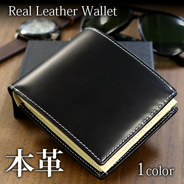 本革二つ折り財布 財布 wallet 本革 リアルレザー 二つ折り メンズ メール便のみ送料無料2