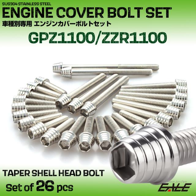 エンジンカバー ボルトセット GPZ1100 ZZR1100 26本セット テーパーシェルヘッド カワサキ用 シルバー TB8751